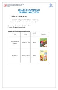 LISTADO DE MATERIALES – 1RO BÁSICO 2026