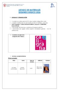 LISTADO DE MATERIALES 2DO BÁSICO 2026