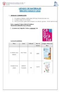 LISTADO DE MATERIALES 3RO BÁSICO 2026