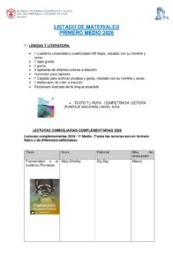 LISTADO DE MATERIALES PRIMERO MEDIO 2026