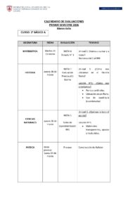 TERCERO BÁSICO A CALENDARIO DE EVALUACIONES PRIMER SEMESTRE